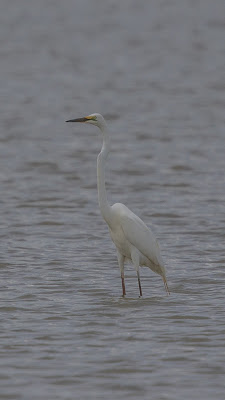 These were the views that alerted me to the Pec's presence in the crake pond. You can easily see the abrupt junction of the breast with the white belly and the yellow base to the bill. It is hard to tell from images without other birds but, pond-side, there were a few Sharpies to compare the size and I was able to tell it was just a bit bigger than a Sharpie.